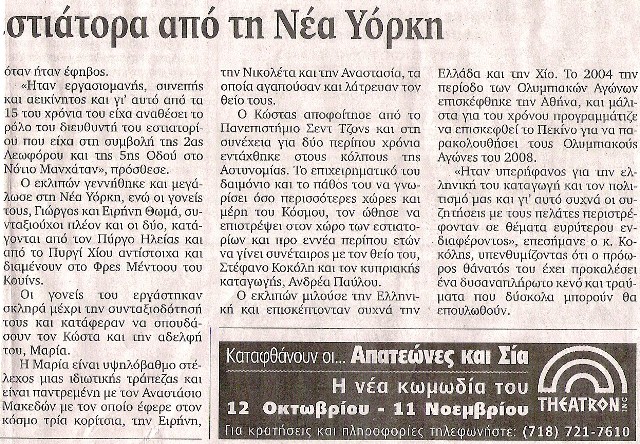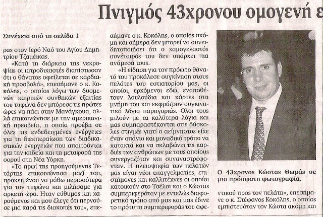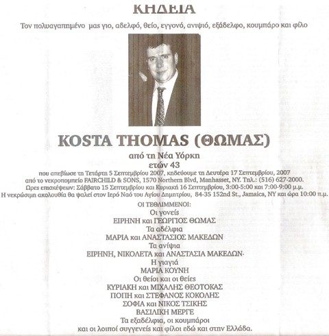 Έφυγε, την Παρασκευή 14 .12.07, ο Γιώργος Θωμάς αδελφός του παπα-Ντίνου, που διέμενε στην Νέα Υόρκη των Η.Π.Α.