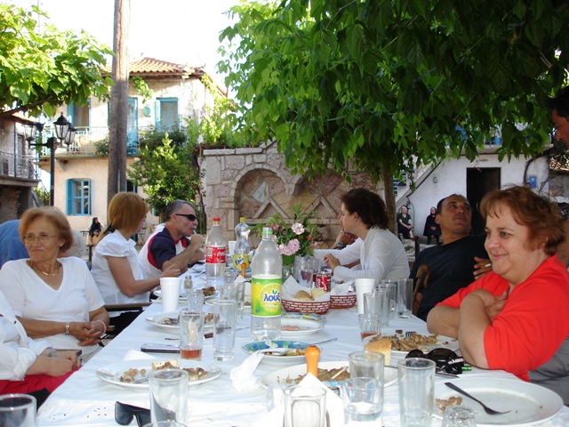 Στο τέλος της διαδρομής, στο Αντρώνι απολαύσαμε όλοι τη φιλοξενία του τοπικού συλλόγου και των κατοίκων που πρόσφεραν 70 κιλά γίδα βραστή, το γνωστό κοκκινέλι καθώς και άλλα εδέσματα.