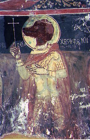 Ανάμεσα στις τοιχογραφίες στο μέσον και δεξιά του Ναού υπάρχει ο Άγιος Χριστόφορος, ο Ρέπροβος, με κεφάλι σκύλου (πιθανόν κυνηγού), κρατώντας στο δεξί του χέρι ένα σταυρό.