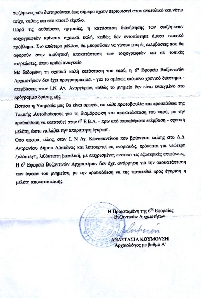 Μια απάντηση στην 6η Εφορία Βυζαντινών Αρχαιοτήτων.