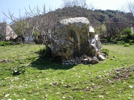 Συνεχίζοντας από το χωριό προς τον Ναό της Αγίας Κυριακής βρίσκουμε μία μεγάλη πέτρα, ένα μεγάλο βράχο που είναι περίπου εξήντα κυβικά. Η παράδοση λέγει πως επάνω σε αυτή την πέτρα μίλησε στα χρόνια της σκλαβιάς ένας ιεροκήρυκας που λεγόταν Παπουλάκης ο οποίος έκανε και πολλές προφητείες. Ο ιεροκήρυκας της Μητρόπολης Ηλείας Αχίλλειος Παπαθανασόπουλος πληροφορούμενος την περίπτωση Παπουλάκη, κατά τα χρόνια της περιοδείας του 1951,1953 και 1954, ομιλούσε στους κατοίκους του χωριού πάνω από αυτόν το βράχο, που σήμερα στο χωριό τον λέμε λίθο, και τον ονόμασε ιερό βράχο.