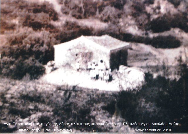 Γι αυτό και ο Δουκαίος Αγωνιστής, κάτοχος μπαρουτόμυλου στην Αύρα, Ιωάννης Ευθυμίου Καπογιάννης (κάπος- Aρχηγός, εξ ου και το Καπογιάννης, η γνωστή δημοσιογραφική οικογένεια του Πύργου) που τραυματίσθηκε θανάσιμα κατά την εκεί μάχη, το 1853 ξαναχτίζει το Ναό όπως μαρτυρεί σχετική επιγραφή (λίθος οικ. κειμήλιο) που εντοιχίστηκε στην είσοδο του Ναού από τον ίδιο.