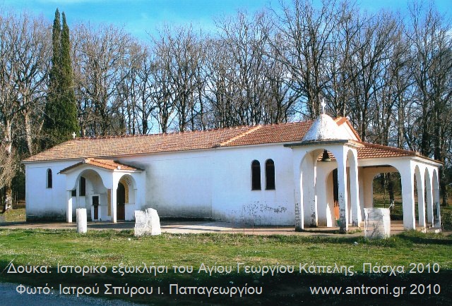 Στον Αϊ Γιώργη της Κάπελης (Αϊ Γιωργάκη) προστάτη των ποιμένων και του δάσους της Φολόης, που βρίσκεται πάνω στο σταυροδρόμι(1) σε 3 χιλιόμετρα από το ιστορικό Πούσι, αριστερά στο δρόμο που οδηγεί στην Νέα Πέρσαινα, το Εκκλησιαστικό Συμβούλιο Αγίου Νικολάου Δούκα (όπου και ανήκει από της κτίσεως του Δούκα), πραγματοποίησε την πρώτη θεία λειτουργία την Δευτέρα της Λαμπρής (ένα παλιό αίτημα του συνδέσμου των απανταχού Δουκιωτών).