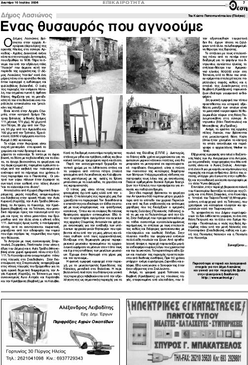 Ευχαριστούμε τον Γιώργο Σαλακά γιά την δημοσίευση του άρθρου στην Εβδομαδιαία εφημερίδα Θέση της Ηλείας: