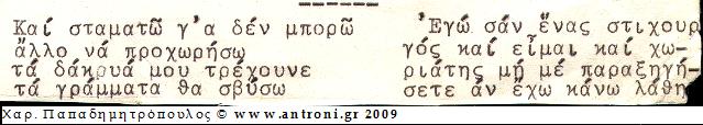 Ποίημα που έγραψε ο Χαράλαμπος Παπαδητρόπουλος: